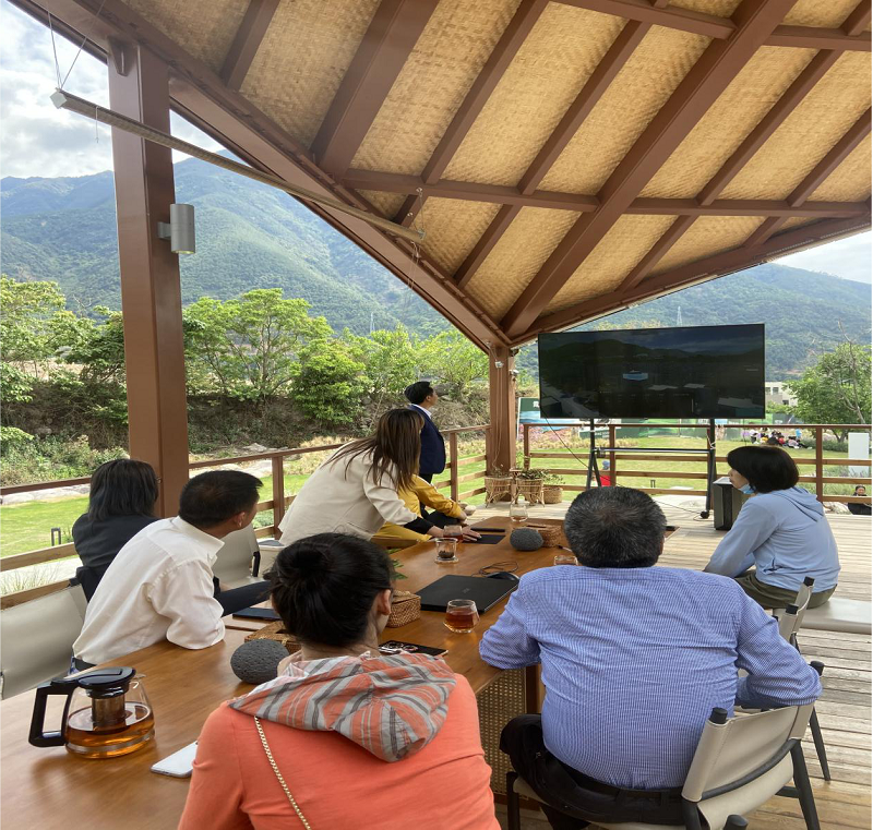 2022年5月2日下午,四川省总工会苗勇副主席和北京拓维研究院王毅院长携家人一行到访NEO Gaia海花沟。凤栖和谷副总经理李涛和公司工作人员一起热情接待了贵宾的到来,并陪同客人参观游览项目。
